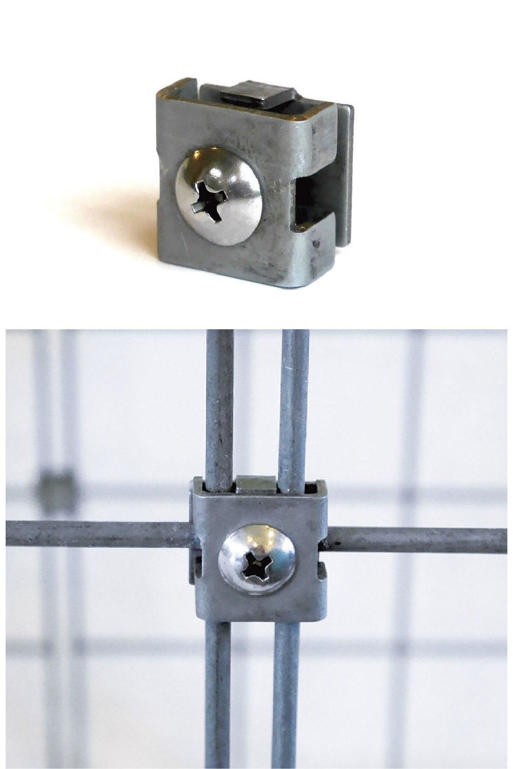 ホームセンターなどで手に入るワイヤーでも簡単に結合できますが、接続金具を使うと便利です。
